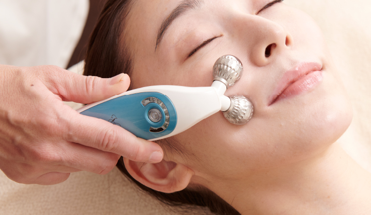 EMSのツインローラー美容機器で顔、首、肩のコリを深部からほぐし、しなやかで動きのよい筋状態を目指すスペシャルコースです。電気刺激によって筋肉の動きを感じることも。全顔の美肌集中パックをしながらのリッチに施術を受けた後は、すっきりと軽くなったような感覚を実感いただけます。